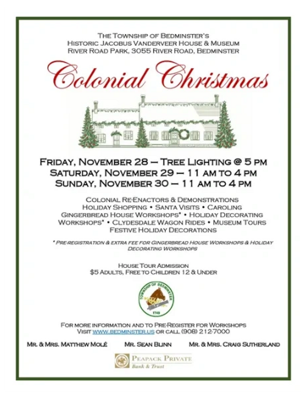 The Township of Bedminster’s Historic Jacobus Vanderveer House & Museum River Road Park, 3055 River Road, Bedminster